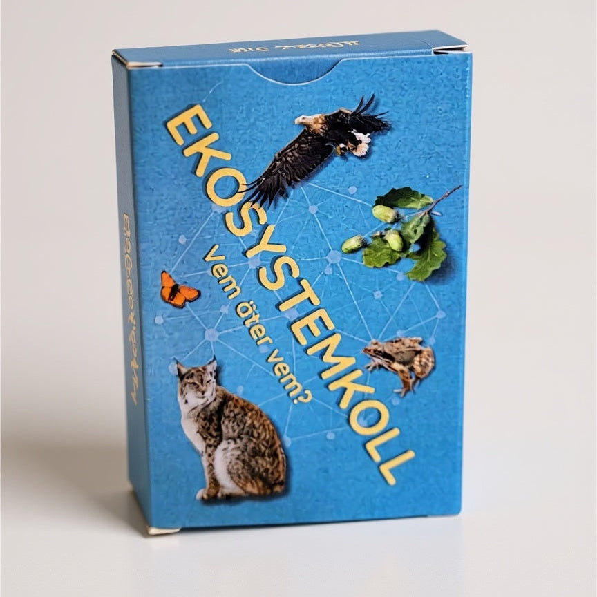 Ekosystemkoll är snabbt, roligt och lätt att komma igång med. Spelet fungerar som ett pussel där spelarna får upptäcka hur arter samspelar med varandra – från skog och sjö till hav. Det passar alla som är nyfikna på naturens samband, oavsett om det är i klassrummet, hemma eller på jobbet. Från 10 år och uppåt.